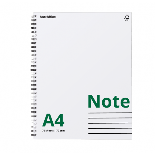 Sidospiralbundet linjerat kollegieblock i A4 storlek med svensk standard hålning. 70 ark och 70 grams papper. Blocken är FSC märkta med vit fram-och baksida samt mikroperforerade papper.