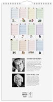 En väggkalender med fem kolumner för att lättare kunna planera och organisera ditt livspussel, du kan själv skapa kalenders funktion utifrån dina behov. Antingen dela in livet i aktiiviteter, matlistor, födelsedagar eller dela in den utifrån familjemedlemmarna i hemmet. Vad om passar bäst i just ert hem. Kalenderns design visar illustrationer gjorda av Ilon Wikland över sagofigurer som har skapats och berättats av Astrid Lindgren.