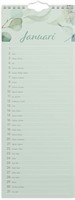 En odaterad kalender som kan hänga på väggen år efter år som ett komplement till den dagliga planeringen. Kalendern är ett perfekt ställe att fylla i vem som fyller år eller andra minnesvärda dagar som firas med nära och kära. Med en kolumn och odaterade månadsblad så är det enkelt att skriva upp speciella återkommande dagar. Väggkalendern innehåller också svenska namnsdagar.