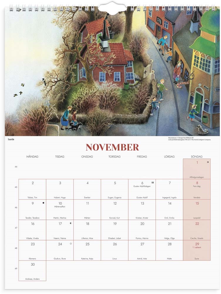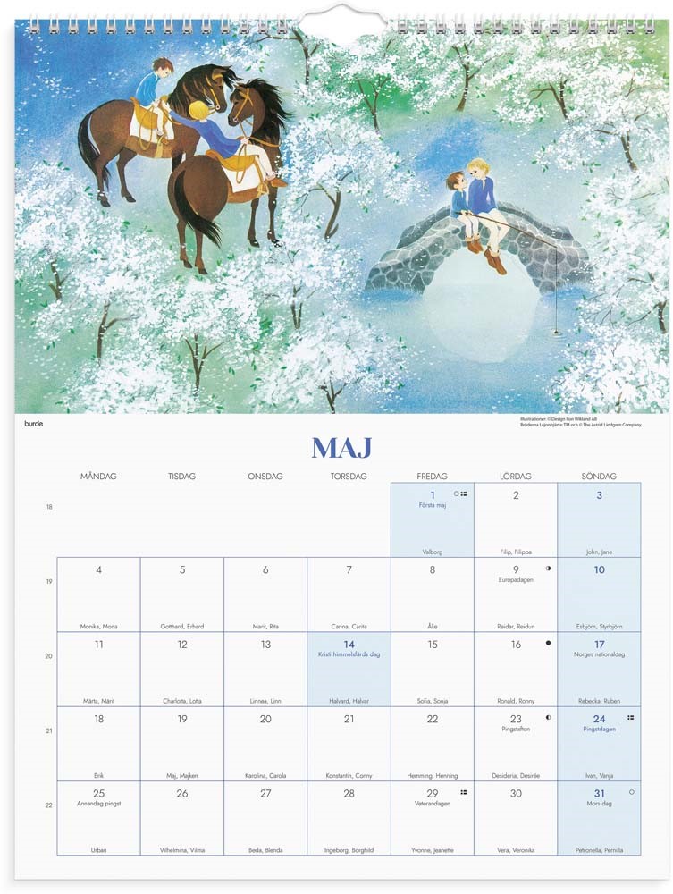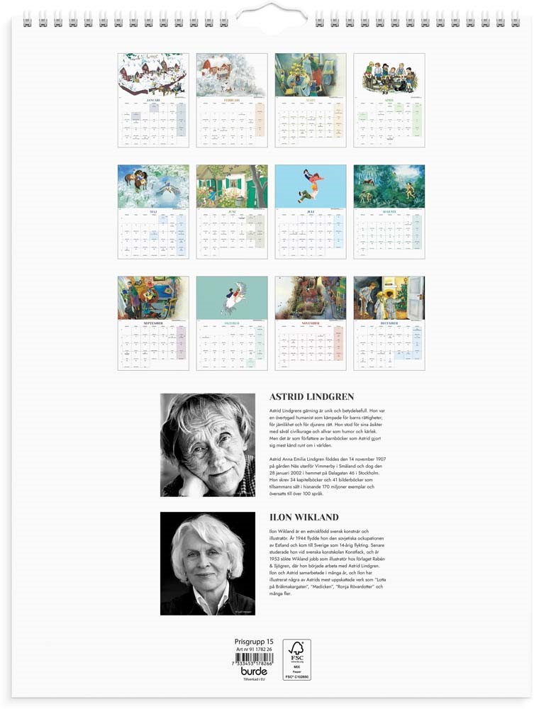 Dekorera ditt hem med minnen från din barndom, återupptäck Astrid Lindgrens karaktärer som är illustrerade av Ilon Wikland i form av en väggkalender. Prata om sagorna, återse filmerna och väck minnen och känslora du kände som barn till liv igen.
