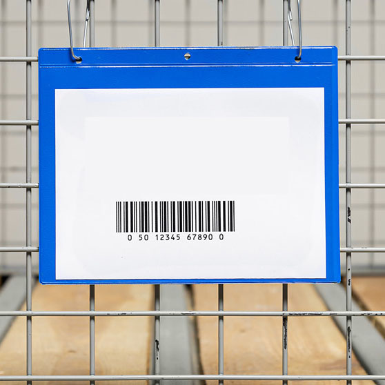 Ficka i hårdplast med genomskinlig plastficka på framsidan som skyddar etiketterna mot smuts och slitage. 3 hål i överkanten för upphängning. A5-format.