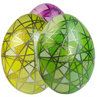 Stående och präglade ägg i vackra blandade färger fyllda med lösgodis. Mått: 14x19 cm.