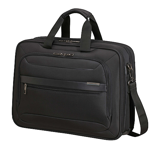 Huvudfack med dragkedja och dedikerad ficka för bärbar dator och en surfplatta på ena sidan. Ficka på framsidan med kontorsdel med plats för block, pennor m.m. Smart Sleeve-funktion som gör det möjligt att fästa väskan på ett trolleyhandtag. Material: polyester och polyuretan. Mått: 44 x 32,0 x 12 cm.