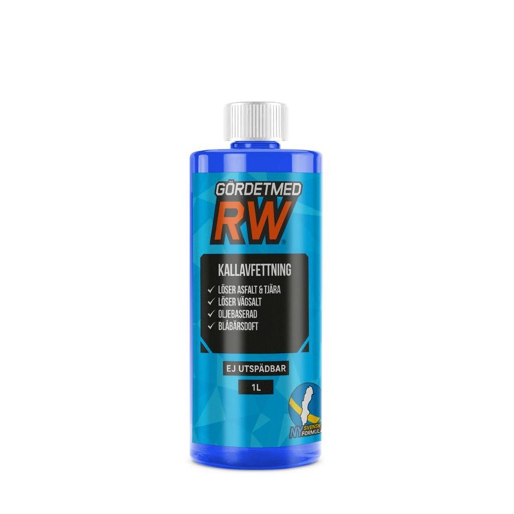 Kallavfettning som effektivt löser upp envis smuts och oljebaserade fläckar. Avfettningen är petroleum-baserad och är ett perfekt komplement till den alkaliska avfettningen från Gör Det Med RW. Produkten tar effektivt bort vägsalt, tjära, asfalt och olja vilket gör den idealisk för fordonsvård och underhåll av arbetsmaskiner. Denna kallavfettning kan inte spädas ut med vatten. För bästa resultat - applicera avfettningen på en torr yta, låt verka i 5-10 minuter och skölj sedan noggrant med högtryckstvätt. Sprutmunstycke ingår ej.