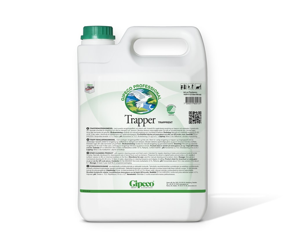 Lågskummande trapprengöringsmedel med suverän rengöringseffekt och fräsch doft. Specialutvecklat för rengöring och vård av stengolv t.ex. terrazzo. Avsedd för regelmässig rengöring av trappor och entréplan i hyresbostäder. Bevarar stenens ursprungliga lyster och ger en smutsavvisande yta. Lämnar ingen hinna eller kemrester på ytan.